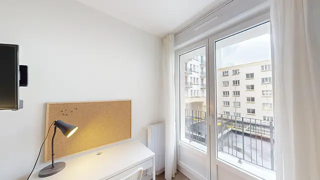 Chaque chambre est équipée d´un lit double, un bureau, une smart TV individuelle (casque audio individuel Bluetooth mis à disposition), et de placards de rangements.