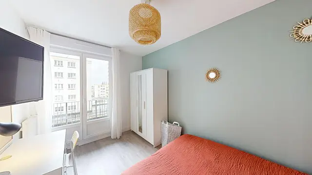 Chaque chambre est équipée d´un lit double, un bureau, une smart TV individuelle (casque audio individuel Bluetooth mis à disposition) et d'une armoire de rangements.
