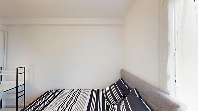 Cette chambre dispose d'un lit double, d'une armoire, d'une fenêtre ainsi que d'un bureau.