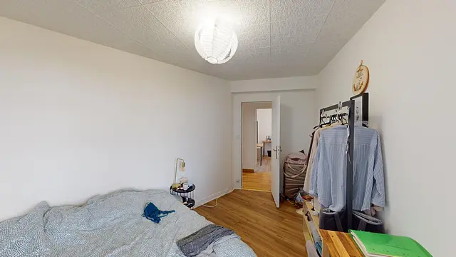 Les chambres sont toutes trois meublées avec lit double, bureau, penderie.