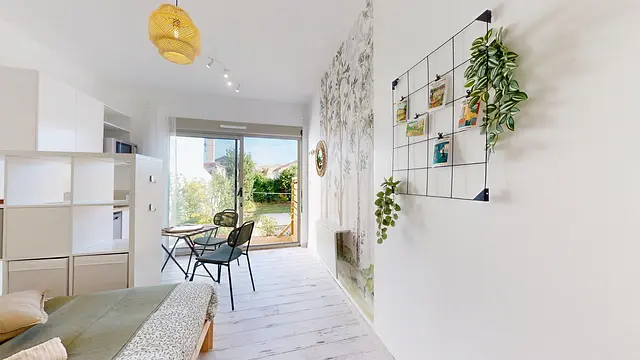 C’est une mini résidence refaite à neuf au pied de l’arrêt de tram T5. Celle-ci est constitué de trois petites colocations avec espaces privatifs et grands communs partagés, chaque colocataire dispose de sa salle d'eau privée (douche, lavabo + wc en option)