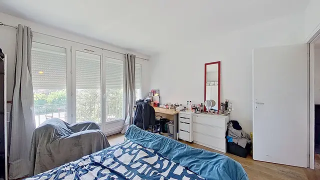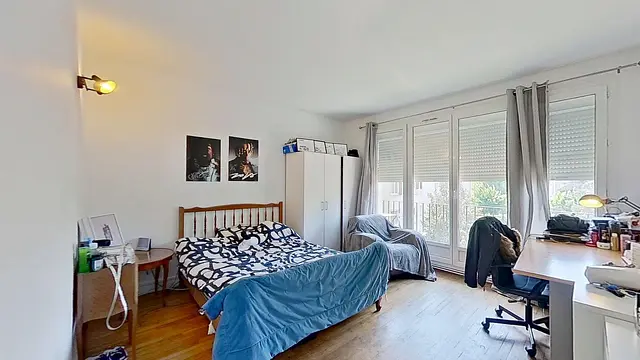 Une salle de bain avec douche, meuble vasque et WC ainsi que des WC séparés viennent compléter cette colocation. Deux chambres ont une salle de bain privative, la salle d'eau est donc partagée entre la chambre 3 et 4.