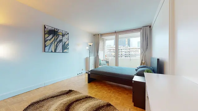 L’appartement se trouve au 10ᵉ étage d’une résidence avec ascenseur, gardien, local à vélos et parking.