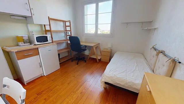 La colocation se compose donc de 4 chambres entièrement équipée et aménagée avec un frigo, un micro-ondes, une cafetière et une bouilloire.