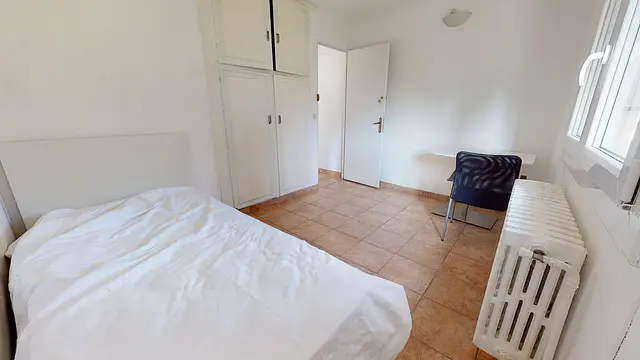 La chambre 3 offre tout le confort nécessaire grâce à son lit simple avec tiroir, son bureau, sa chaise et ses placards intégrés.