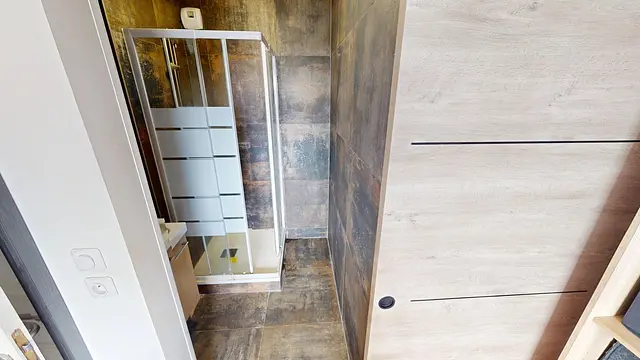 La salle d'eau dispose d'une grande douche ainsi que d'un meuble double vasques.