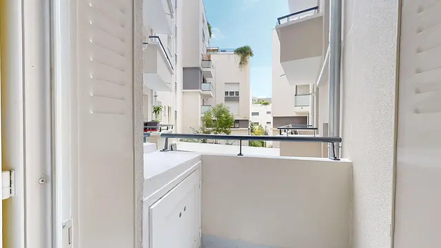 Le logement se compose de trois chambres, d’un séjour, d’une salle d’eau, d’une salle de bain, d’un WC indépendant et d’une cuisine ouverte bien équipée (Plaques de cuisson, hotte, lave-vaisselle, placards de rangement, etc.). Des balcons viennent compléter les espaces chambres. Le séjour se compose d’un espace salon muni d’un grand sofa, d’un lampadaire, et d’une table basse, puis un espace salle à manger vient compléter cette pièce de vie se munit d’un meuble bibliothèque, et d’une table à manger accompagnée de quatre chaises et d’un meuble. La salle de bain dispose d’un meuble vasque, d’une baignoire et d’une machine à laver, et quant à la salle d’eau, elle dispose d’un meuble vasque et d’une douche.