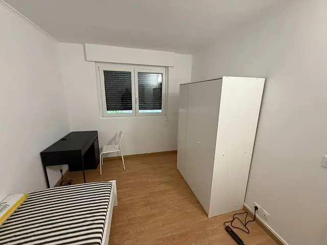 Cette chambre n'était pas accessible pendant la visite virtuelle. Elle possède un lit simple, un bureau avec chaise de bureau ainsi qu'un placard de rangement.