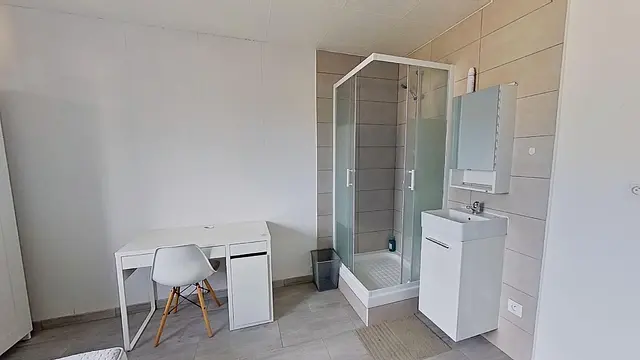 Concernant les salles de bain, chaque chambre dispose de sa propre salle d’eau privative. Ce bien permet d’allier les avantages de la colocation tout en gardant son indépendance, son autonomie et son intimité. Une salle de bain commune supplémentaire est disponible et accueille notamment un espace buanderie à la disposition de tous.