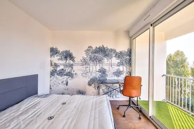 L'appartement est complété par un balcon aménagé orienté sud : idéal pour profiter du soleil ☀️. Tout est prévu pour les véhicules des colocataires : parmi les places disponibles dans la résidence, 3 sont réservées pour cet appartement.