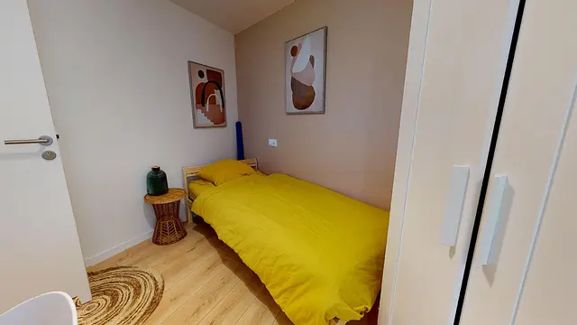 L’aménagement de la chambre 3 offre tout le confort nécessaire grâce à son lit simple, son bureau, sa chaise et ses rangements.