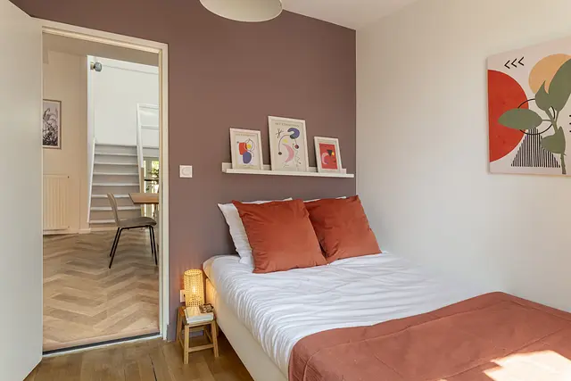 🌛Oqoro vous propose six chambres dont quatre avec une salle de bain privative. Elles sont composées chacune d'un lit double, d'un bureau avec une chaise. Également, vous disposez d'un placard.