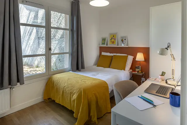 La chambre est composée d'un lit double, d'un bureau avec une chaise. Également, vous disposez d'un placard.