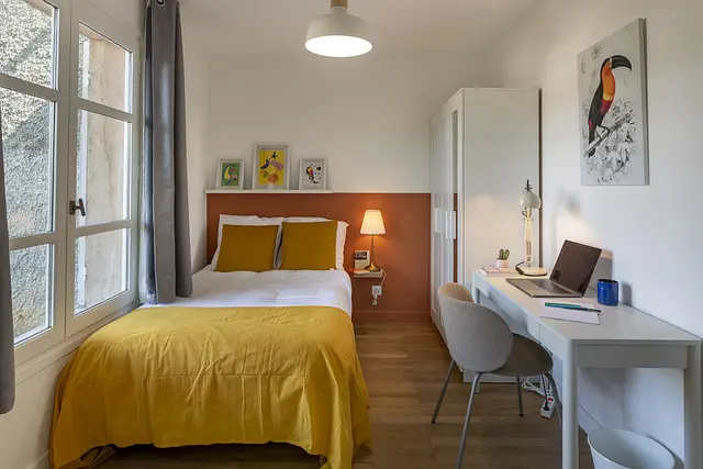 🌛Oqoro vous propose quatre chambres dont une avec salle de bain privative. Elles sont composées chacune d'un lit double, d'un bureau avec une chaise. Également, vous disposez d'un placard.