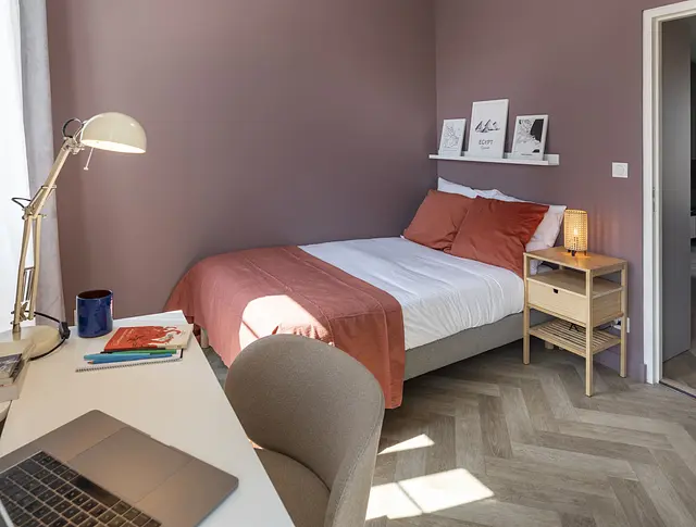 La chambre est composée d'un lit double, d'un bureau avec une chaise. Également, vous disposez d'un placard.