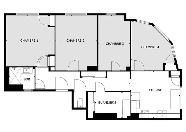 Vous disposerez de quatre chambres spacieuses avec literie double et bureau, d'une salle de bain et un WC indépendant.
