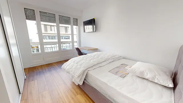 Chaque chambre a été meublée avec lit double, literie, bureau, TV murale et placard de rangement.