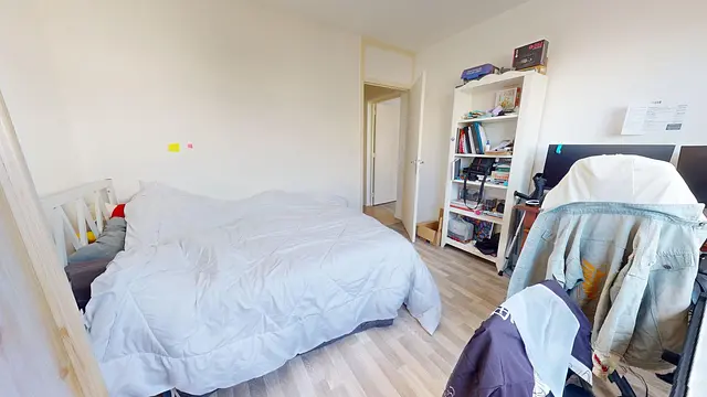 Cette colocation de trois chambres s'ouvre sur une entrée avec un porte-manteau ainsi que d'un grand placard mural.