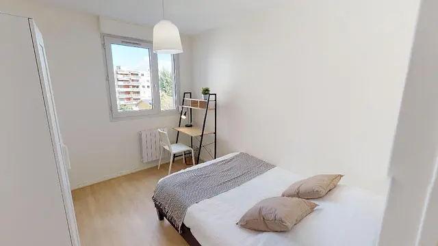 La chambre 3 dispose de tout le confort nécessaire (lit double, bureau chaise, placard et rangements). Le plus de cette chambre : une agréable luminosité !
