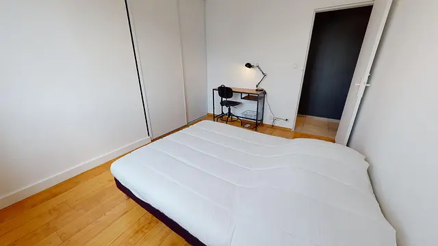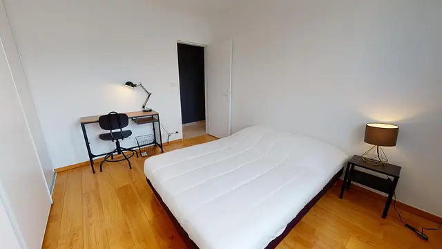 L’aménagement de 10m2 de la chambre 3 est total et offre tout le confort nécessaire grâce à son lit double, son bureau, sa chaise et son grand placard intégré.