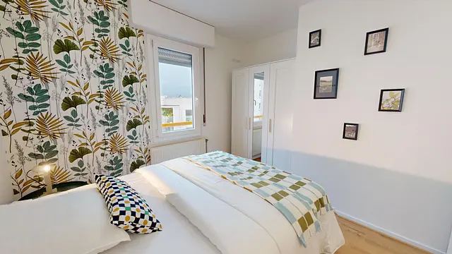 Cet appartement dispose d'un grand balcon, accessible depuis la cuisine ainsi que les chambres trois et quatre.