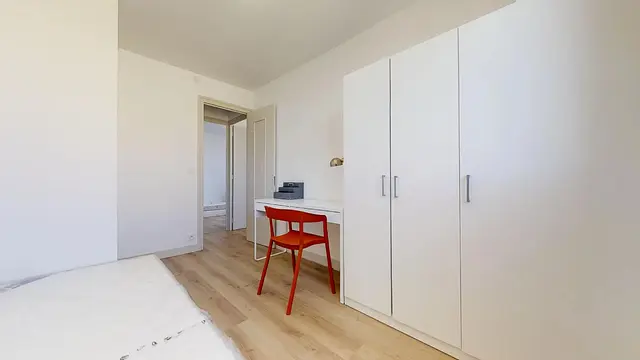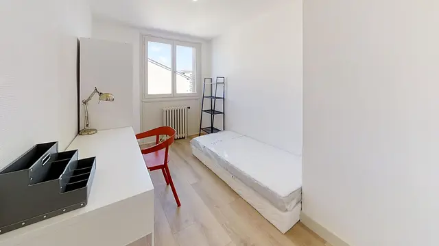 Colocation pour étudiant ou jeune actif, 62m2 avec 3 chambres avec un séjour avec cuisine US. Les chambres sont meublées (Lit, Placard, Bureau). La cuisine est tout équipée avec électroménager et vaisselle, salle de bains avec lave-linge, WC indépendant. 4eme étage avec ascenseur.