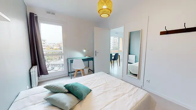 OQORO vous présente cette colocation de 102m2 avec 5 chambres située 135 rue Challemel-Lacour dans Lyon 8ème.L'appartement est idéalement située à 3 minutes du tram T6 arrêt Moulin à Vent et à 2 min du bus 34 et C12. Vous pourrez rejoindre en 20 min la Faculté de Médecine de Grange Blanche et l'Université Lyon 2.A proximité vous trouverez toutes les commodités : Supérette, point chaud, coiffeur, poste, Franprix à 5min, banques, Super U à 8min.L'appartement possède une belle pièce de vie avec canapé d'angle, table basse, table à manger et cuisine ouverte. Cette pièce donne accès à un balcon avec vue dégagée sur la co-propriété.La cuisine est équipée avec frigo, lave-vaisselle, micro-ondes, four, plaque de cuisson et hotte.Enfin, 2 salle de bain avec meuble vasque et douche d'un l'une avec une machine à laver ainsi que 2 WC viennent compléter ce logement;