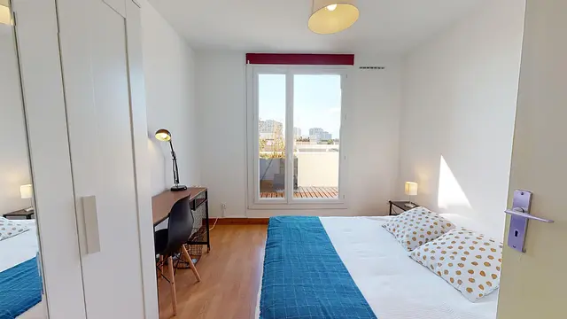 La chambre 1 dispose d'un lit double, d'un grand placard et d'un bureau. Mais son vrai plus vient de l'immense balcon sans vis à vis qu'elle partage avec la chambre 2. Coup de cœur garanti.