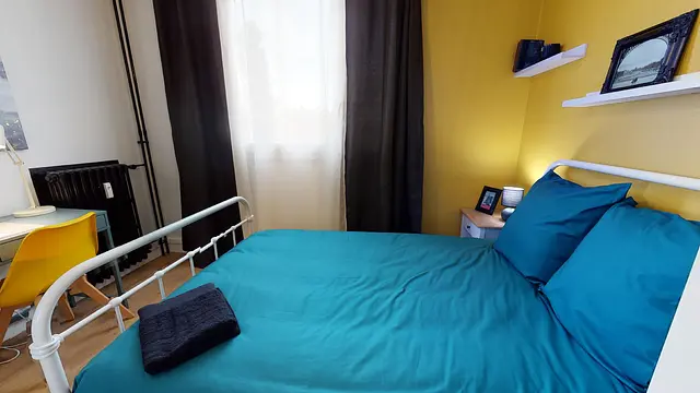 L’aménagement des 9,5m2 de la chambre 4 offre tout le confort nécessaire avec son lit double, son bureau, sa chaise et ses placards de rangements.