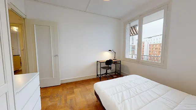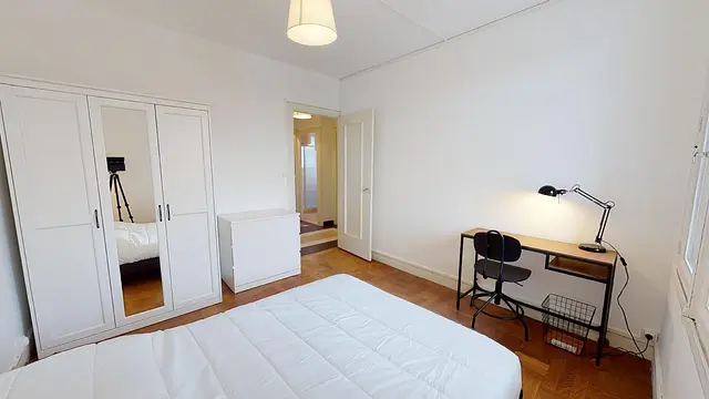 La chambre 2 est attenante au salon, elle dispose d'une belle luminosité ainsi que de tout l'ameublement nécessaire (lit double, table de chevet, commode, grande armoire et bureau). Vous n'avez plus qu'à emménager avec vos affaires !