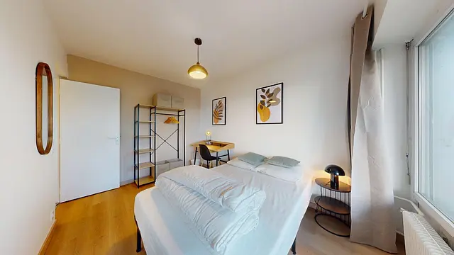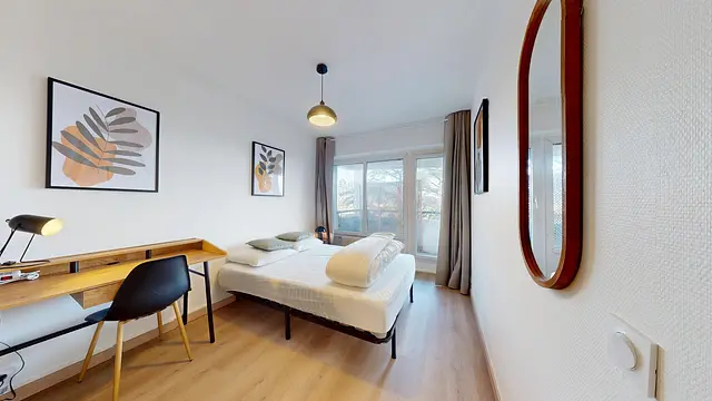 Chaque chambre a été minutieusement pensée pour offrir un équilibre parfait entre intimité et espace de travail. Vous y trouverez un équipement complet comprenant un lit double, un bureau design accompagné de sa chaise, ainsi que de nombreux rangements intégrés, le tout sublimé par une décoration soignée. Le véritable atout réside dans le fait que toutes les chambres bénéficient d'un accès direct à un balcon partagé, garantissant une luminosité naturelle exceptionnelle tout au long de la journée.