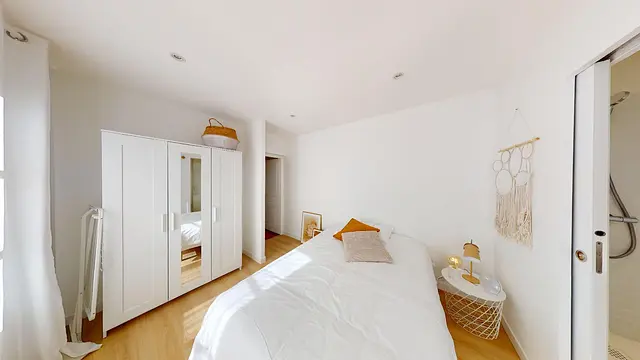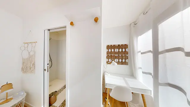 Les espaces communs sont très bien aménagés : la cuisine est lumineuse et fonctionnelle, avec un grand espace de rangement et un lave-vaisselle. Le coin salon est cosy et chaleureux avec une grande télévision et un canapé confortable. L'appartement dispose de 3 chambres, dont une avec sa salle de bain privative et une salle d'eau commune avec une belle douche.