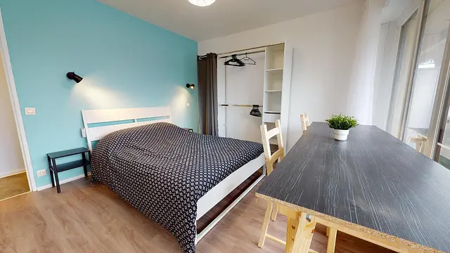 Venez profiter de l’essor du 9e arrondissement de Lyon dans cette grande et belle colocation meublée de 116 m2 située au 3e étage de la résidence des 2 amants au 47 rue du professeur Patel. Elle se trouve à 15 minutes à pied du métro D (arrêt Gorge de Loup), accessible également par plusieurs des 10 lignes de bus qui croisent pavillons à 400 m de l’appartement (arrêt Montribould). La résidence est proche de plusieurs parcs très agréables (Parc de la Chapelle, Parc des Hautefeuilles et Parc de Champvert). Les locataires ont même la possibilité de bénéficier d’un accès à un court de tennis dans la résidence en payant un abonnement annuel qui avoisine les 40 €/an .L’appartement en lui-même se compose de 5 chambres, toutes avec un accès à l’un des deux balcons, d’une très grande pièce de vie partagée entre la cuisine entièrement équipée et ouverte sur le salon, de deux salles de bain (dont une avec un wc) et des toilettes indépendantes.L’appartement entier est équipé de parquet et d’un ameublement tout neuf. Le choix des couleurs aussi joue la carte de la modernité et de la sobriété. La cuisine dispose d’un équipement électroménager complet : frigo, four, micro-onde, grille-pain, machine à espresso, bouilloire. On trouve une machine-à-laver et un sèche linge ainsi qu'un congélateur dans la buanderie attenante aux wc.C’est un appart qui a été pensé et aménagé pour la vie en colocation avec un bon mix entre espace commun et les chambres. Coup de coeur garanti.