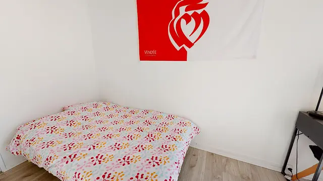 L’aménagement de la chambre 1 est totalement optimisé et fonctionnel : un lit double, un bureau, et une grande penderie. Cette chambre donne directement accès au balcon filant.