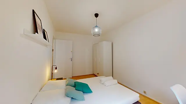 La chambre 3 se compose d'un lit double d'un bureau, d'une chaise et d'un placard de rangement.