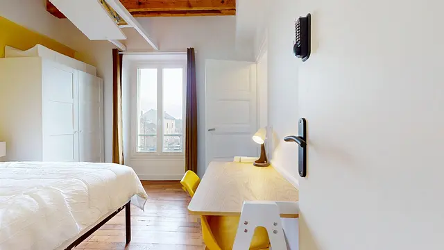 Une attention particulière a été portée à votre sérénité au sein de la colocation. Les chambres bénéficient d'une isolation renforcée grâce au traitement isophonique des cloisons et des portes, vous garantissant un maximum de tranquillité et d'intimité au quotidien.