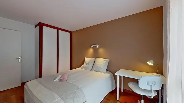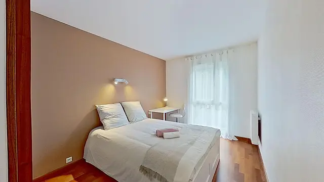Les 3 chambres sont meublées avec lit double, bureau et grand placard de rangement.