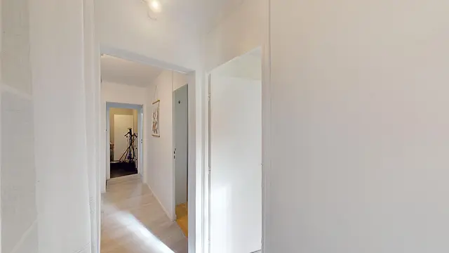 Dans l'appartement, vous découvrirez une entrée, une cuisine, un coin buanderie, un salon ouvert sur une salle à manger, trois chambres, une salle de bain et un toilette séparé. À titre informatif, le logement est doté de la fibre optique.