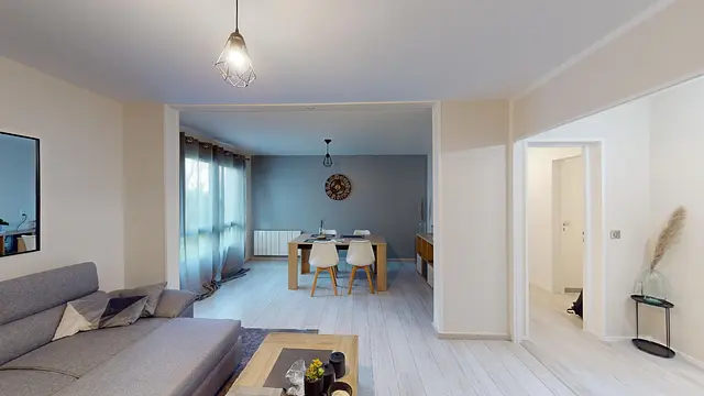 Dans l'appartement, vous découvrirez une entrée, une cuisine, un coin buanderie, un salon ouvert sur une salle à manger, trois chambres, une salle de bain et un toilette séparé. À titre informatif, le logement est doté de la fibre optique.