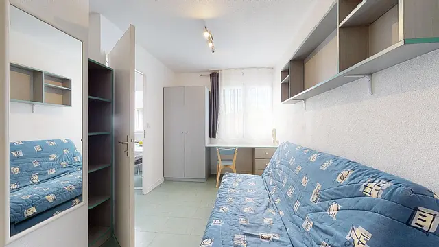 Le logement se compose de deux parties identiques. Chaque locataire dispose d'une entrée et d'une partie privative. Chaque espace privatif dispose d'un canapé convertible, d'un espace bureau et d'une salle de bain indépendante munie de son meuble vasque, son toilette et sa douche.