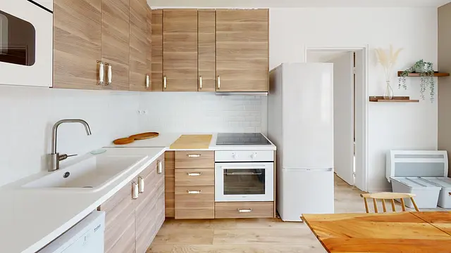 Vous aurez votre propre kitchenette avec four, plaque de cuisson, micro-ondes, frigo, et rangement.