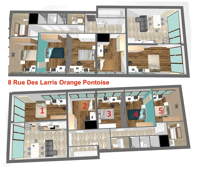 OQORO vous présente cette colocation meublée de 5 chambres de 102,94 m² avec balcon au 8 Rue Les Larris Orange, à Pontoise, à proximité directe de la gare de Cergy Préfecture.