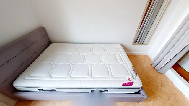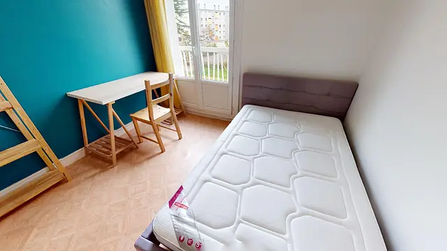 La chambre 2 mesure 11m2. Cette chambre est équipée d’un lit double, d’un bureau, d’une chaise et d’un placard de rangement.