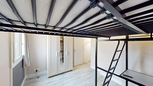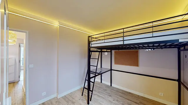 Cette chambre est équipée d'un lit en mezzanine, ainsi que d'une armoire.
