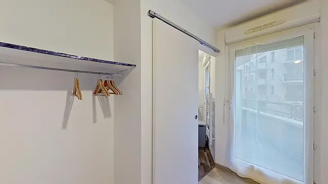 L'appartement s'ouvre sur une entrée qui vous conduira dans la pièce à vivre.