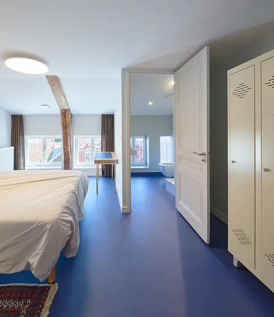 - Universités et grandes écoles : Ce coliving se trouve à proximité de :ESADSE - école supérieure d'art et de Design de Saint-EtienneUniversité Jean Monnet, site Carnot à 5 minutes ou se situe le Laboratoire Hubert Curien. Télécom Saint-EtienneENSASE - l’Ecole Nationale Supérieure d'Architecture de Saint-Etienne IFC de Saint-EtienneChambres : Ce coliving comporte 16 chambres aménagées avec salle d’eau privative et WC privatifs. Les chambres se répartissent dans les étages des 3 bâtiments de la demeure.Parties communes : L'intégralité des parties communes se trouvent au rez-de-cour de la résidence. L'entrée du coliving se fait par la cour intérieure. Cette entrée s'ouvre sur un hall qui dessert le salon de la résidence. Ce salon à la décoration soignée est aménagé avec un canapé, des fauteuils, une TV écran plat 4K, des tables basses, etc. Un espace bureau/ coworking avec table et banc est adjacent au salon.Ce coliving comporte également une grande cuisine entièrement équipée, fonctionnelle et sa salle à manger adjacente. Cette cuisine comporte deux éviers, deux lave-vaisselles, trois réfrigérateurs dont un avec casier individuels, un fourneau semi-professionnel cinq feux et ses deux fours. S'y ajoute des casiers métalliques individuels de rangements. Une grande table à manger vient compléter cette cuisine.Un espace salle à manger avec tables, chaises et banquette est présent dans le prolongement de la cuisine.Des espaces additionnels accessible à partir rez-de-cour sont également présent :une salle de fitness un tapis de course, un éliptique, un multi postes