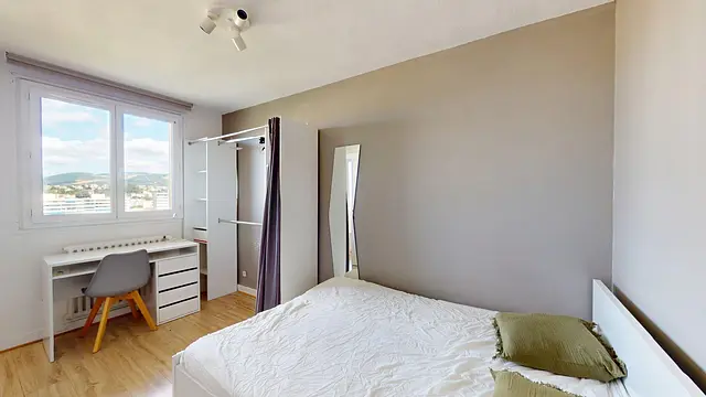 Oqoro vous présente cette colocation meublée de 64 m² située au 4ème étage de la Résidence Dombasle à Saint-Étienne. Le logement, traversant et lumineux, offre une belle vue dégagée sur les hauteurs de la ville.
