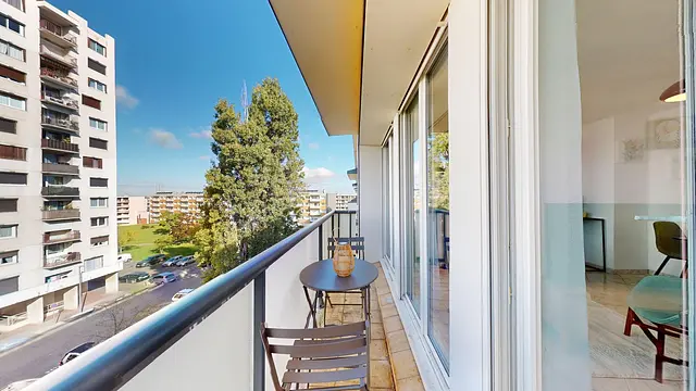 Un balcon filant accessible depuis le séjour permet de profiter d’un bel espace extérieur, idéal pour prendre l’air ou partager un café au soleil.