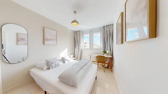 Chaque chambre est meublée et décorée dans un style épuré et chaleureux. Elles disposent toutes d’un lit double, d’un bureau avec chaise, d'un grand miroir, d'un grand placard de rangements et de rideaux occultants, parfaits pour le confort et la tranquillité.