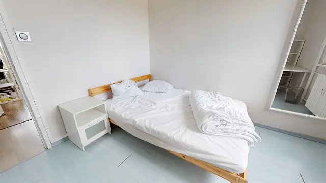 La chambre 3 située au fond du couloir sur la droite mesure 11m2. Cette chambre comporte un lit double, un bureau, une chaise et des rangements.